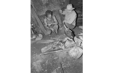 I interviewed Hugh Oaks, who at the time of filming, was the owner of the Vancouver game farm. The crew of First Blood requested a boar of which he said he'd be able to deliver. On the morning of filming he drove out from Abbotsford on his way to North Vancouver when Porky escaped. He was stuck in rush hour traffic when Porky knocked his gate loose and ran down a hill. Porky ended up being wrangled up after the Police and Fire Department got involved. Mr. Oaks managed to get Porky to the set although a little late and filming began. The crews constructed a pen for Porky and got him ready for his big scene. The stuntman stood on the edge with a rubber knife, the director yelled action and the stuntman jumped on Porky stabbing him a couple of times. The stuntman then jumped out of the pen and the director yelled cut. He wanted the stuntman to do the scene again when Mr. Oaks advised him that would be a very bad idea. The director asked him why?, and Mr. Oaks informed him that Porky would be on to the stuntman who could be seriously injured. The stuntman agreed with Mr. Oaks and called it a day. Mr. Oaks then stood just outside of the pen and camera with a treat so Porky would move while being filmed. The director yelled CUT, handed Mr. Oaks $500 bucks, which was big money back then and took Porky back home.