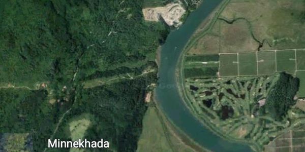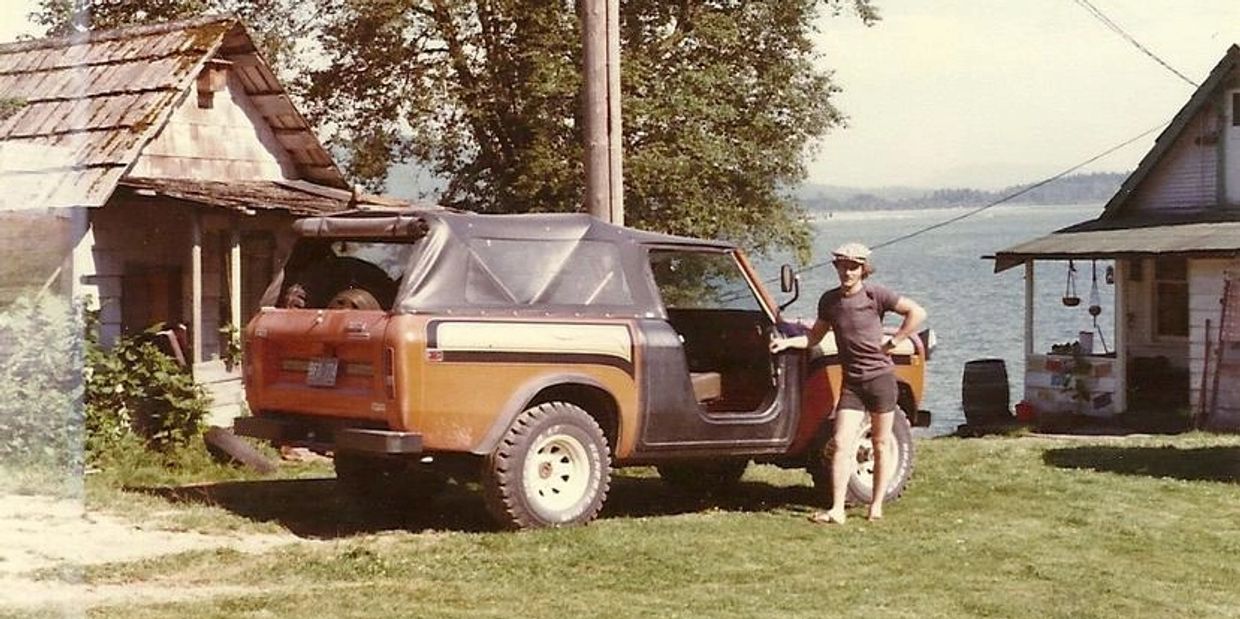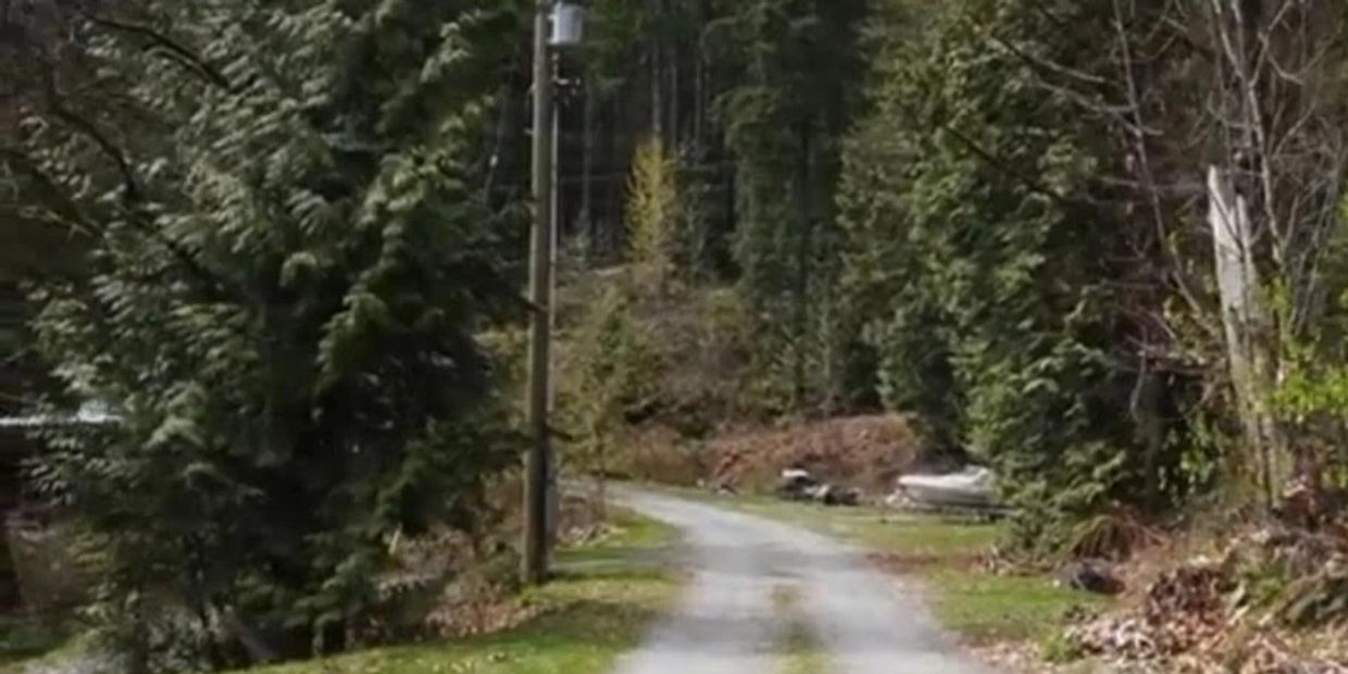 A great view the Golden Ears in the background and the cabin behind Sly was gone